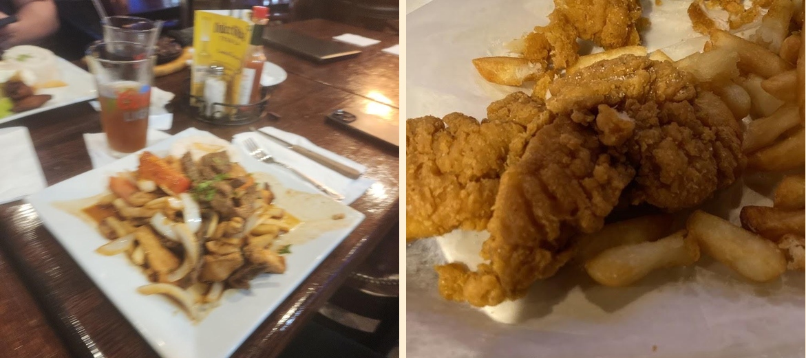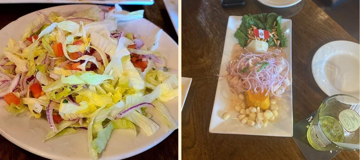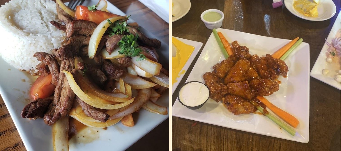 Must-try dishes include Papa a la Huancaina, Churrasco, and the Picada D'Carbon. For appetizers, go for Salchipapa or Calamar Frito.